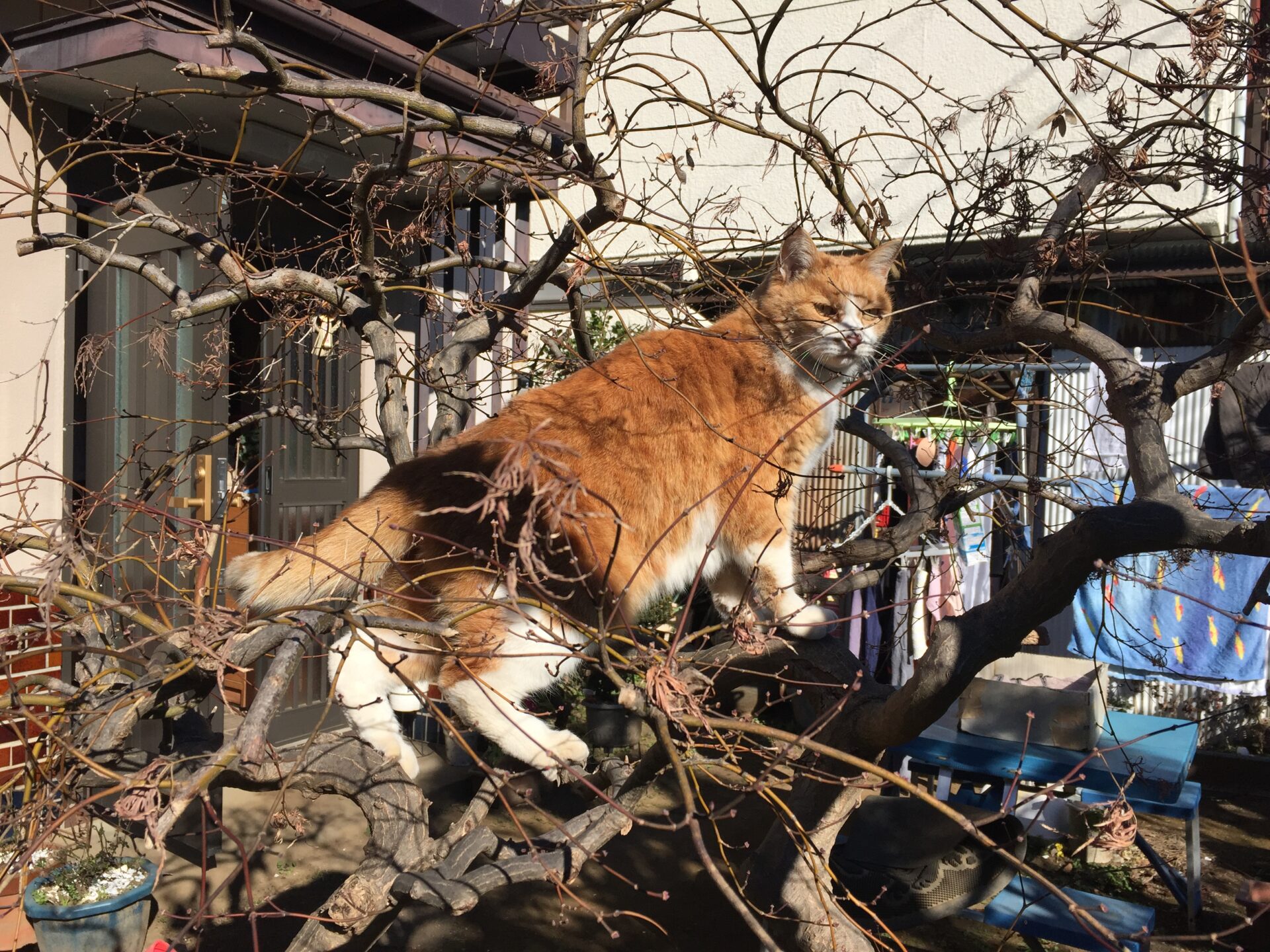 ネコ写真館新年1月3日の木登りする まろすけ。