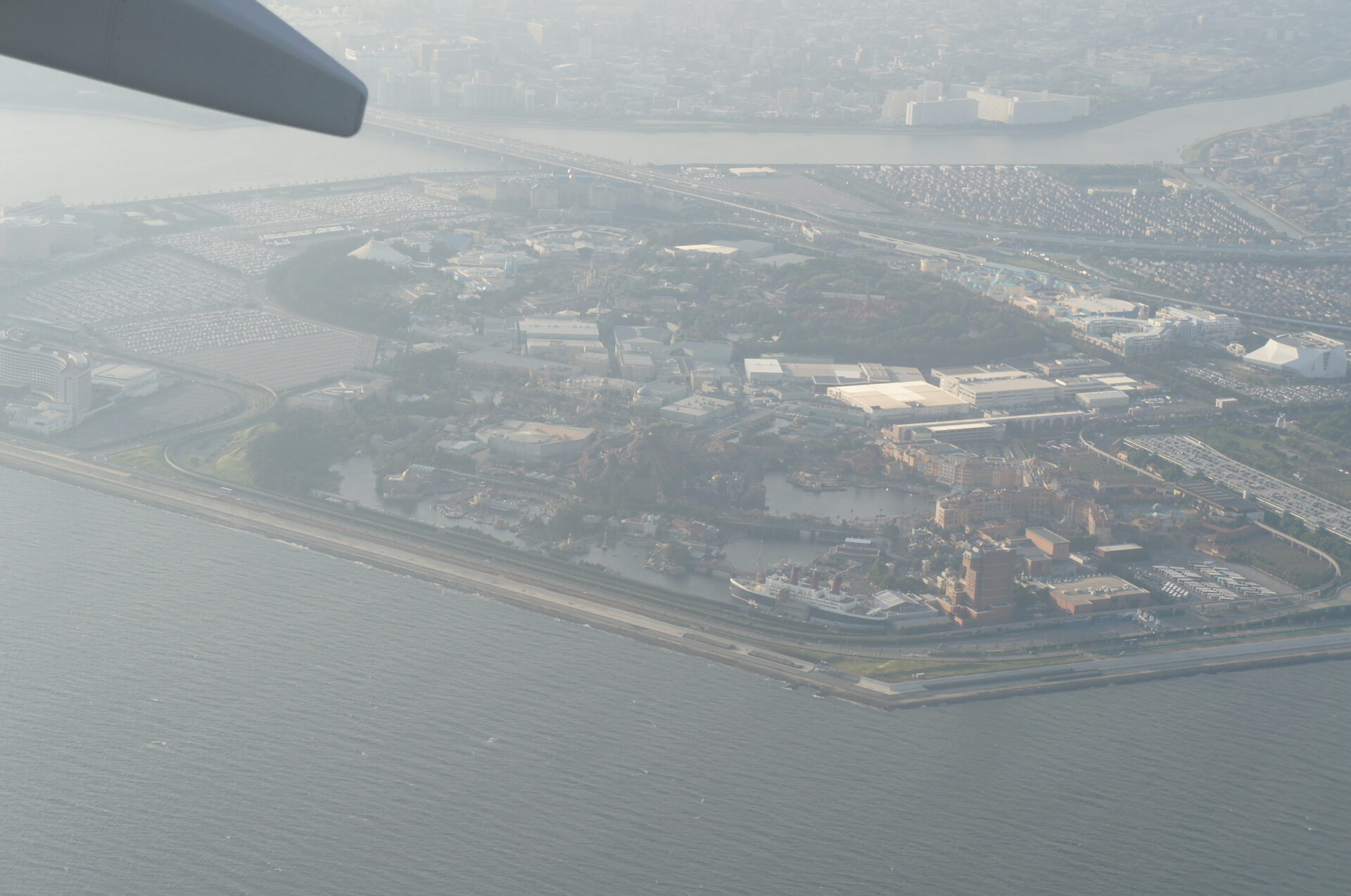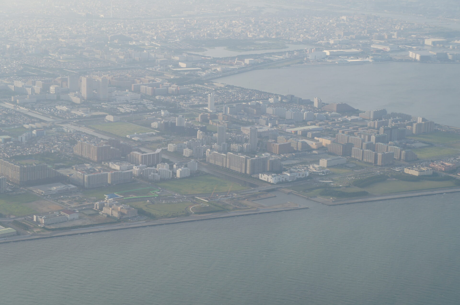 飛行機は千葉県の上を大きく旋回して〜浦安市の上を通り着陸体制になりました。