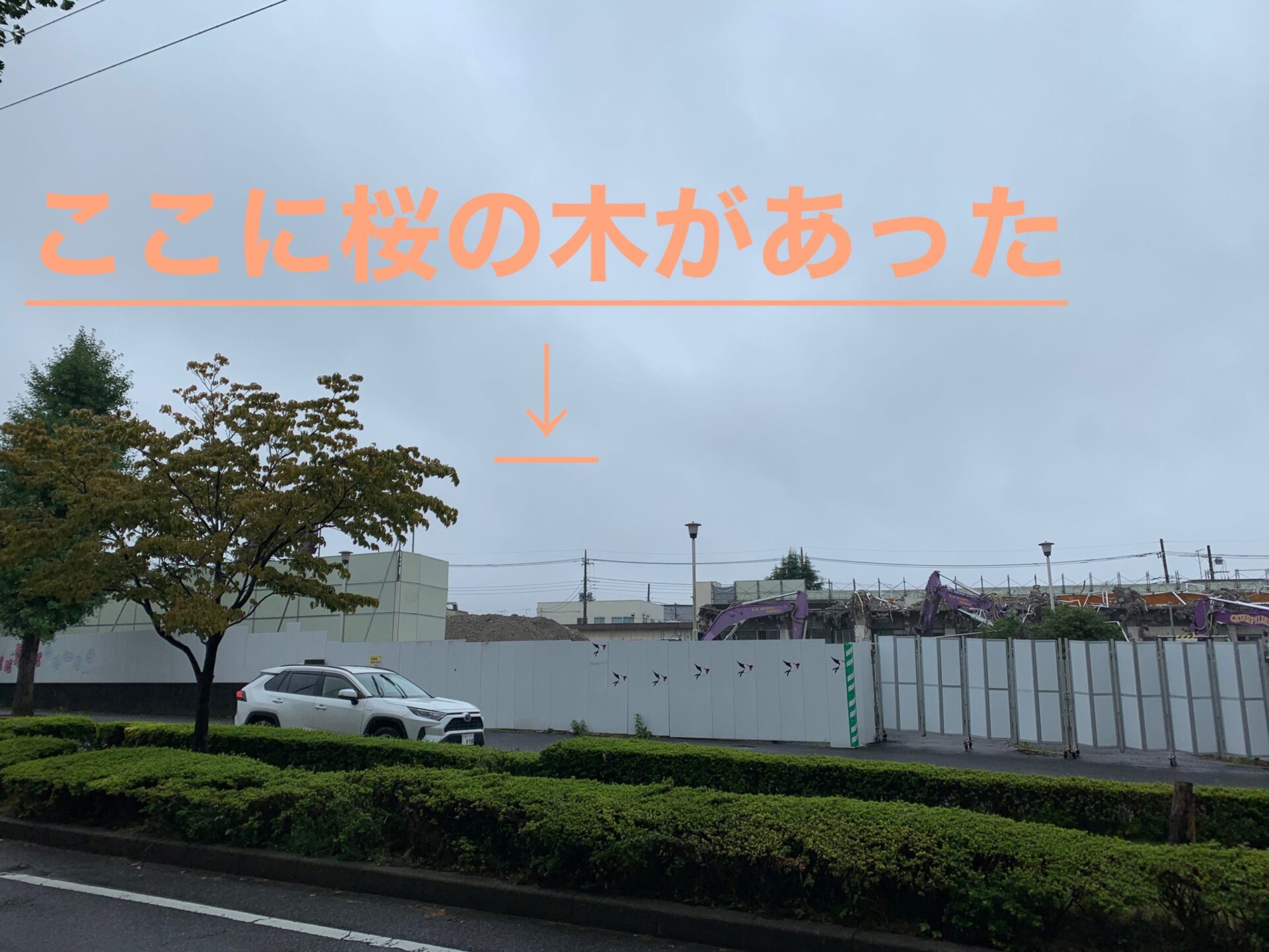 ヤオコーの駐車場になる場所だから、残してくれるんじゃないかと期待してたのに〜